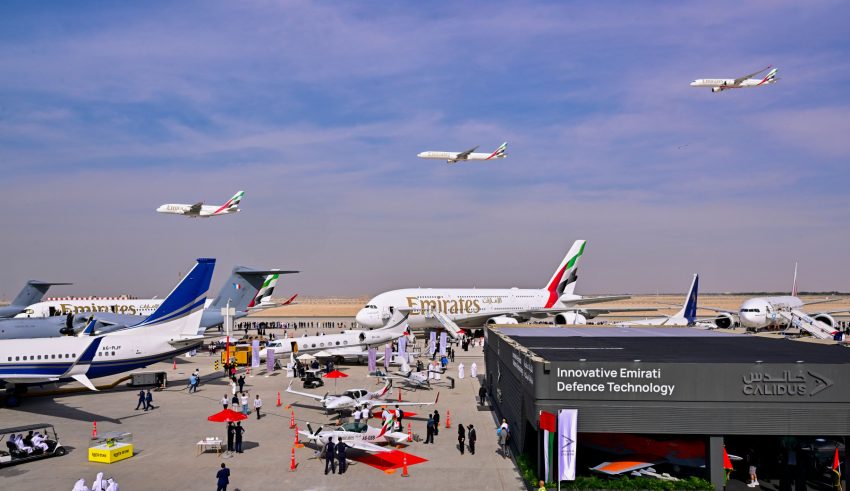 The iconic Emirates A380 flew at an altitude of 500ft, followed by the Boeing 777 at 700 ft and finally the A350 flying at an altitude of 900ft. One of the Dubai Airshow’s most highly anticipated events, the stunning aerial display delighted thousands of attendees, as the formation soared above the Al Maktoum International Airport (DWC) runway.