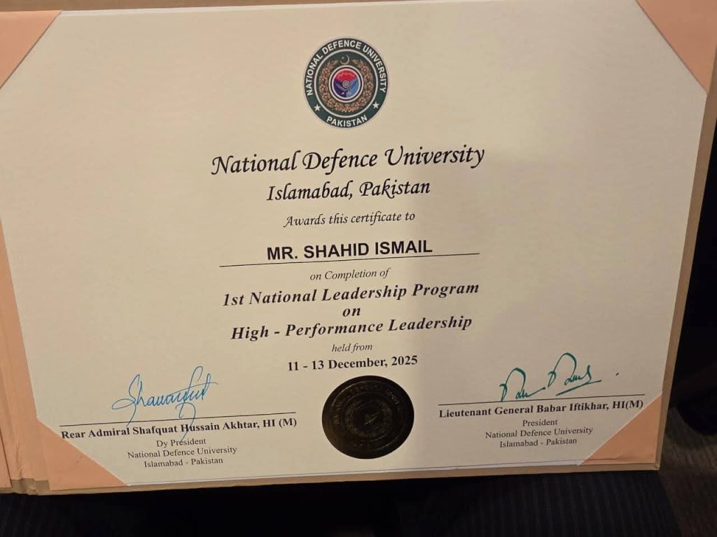 DUBAI/ISLAMABAD: Mr. Shahid Ismail, Chief Executive Officer of Premier Cables Private Limited, has successfully completed the 1st National Leadership Program on “High-Performance Leadership” at the prestigious National Defence University (NDU), Islamabad.