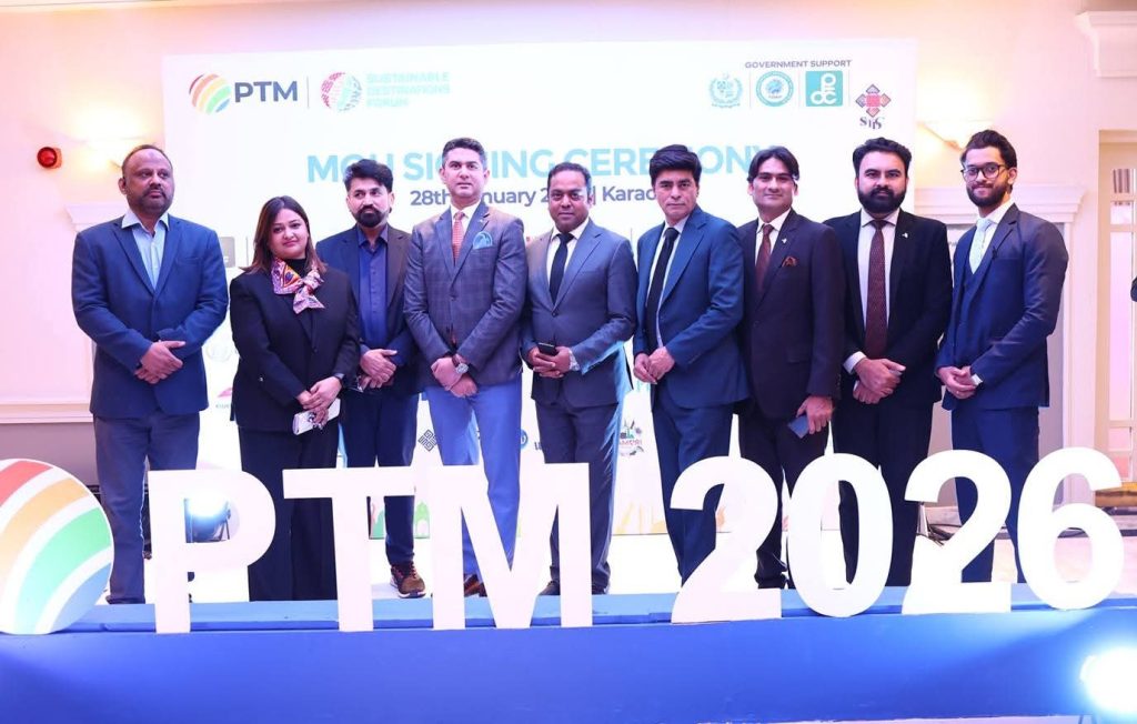 PTM signed multiple Memorandums of Understanding (MoUs) with different partners, including ERG, South Air, Marriott Hotel and Sindh Tourism Development Corporation (STDC) in connection with the 5th edition of PTM trade fair to be held on April 3-5, 2026.