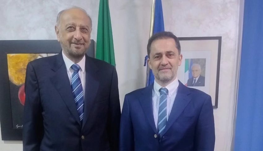 DUBAI/KARACHI: Italian Consul in Karachi His Excellency, Fabrizio Bielli, paid a courtesy call on Mohomed Bashir, Chairman of the Board of Directors of Gul Ahmed Textile Mills, in a meeting aimed at strengthening economic and commercial ties between Italy and Pakistan. The meeting was held in a cordial atmosphere, reflecting the shared interest in expanding cooperation between the two countries in trade, industry, and investment.