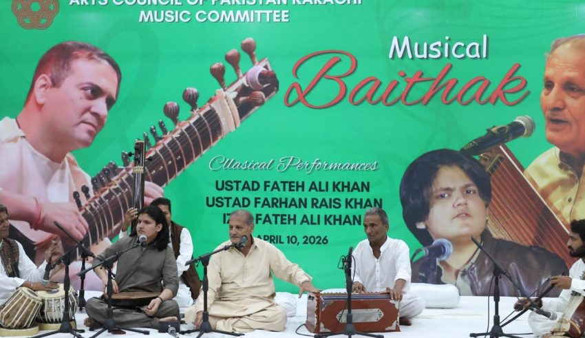 KARACHI: Arts Council of Pakistan Karachi’s Music Committee organised a classical music-based “Musical Baithak” at the Haseena Moin Hall, drawing a large number of artists, literary figures, and music enthusiasts. Renowned classical vocalist Ustad Fateh Ali Khan captivated the audience with a mesmerising performance. He began with Raag Vanti and went on to present Basant Bahar and a thumri, winning hearts with his masterful rendition.