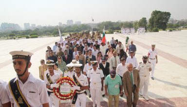 In a historic and unprecedented gesture, officers of the Pakistan Merchant Navy, accompanied by their families, paid a solem…